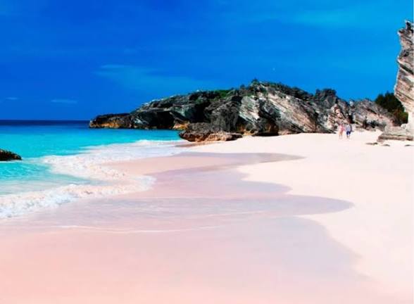 Turquoise shallows lead to sapphire blue depths. White tips spray as the waves crash on mineral-soaked sand. However, it is not mainly the natural minerals that provide the pinkish hue that draws people to this beach. It is, in fact, biological organisms! 🌊